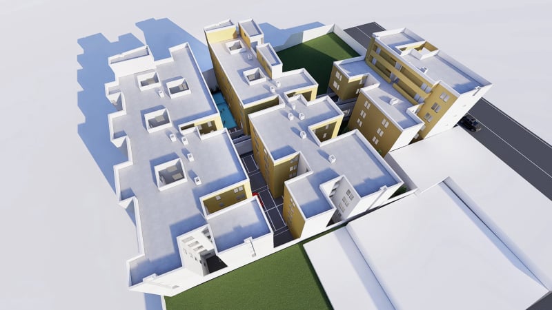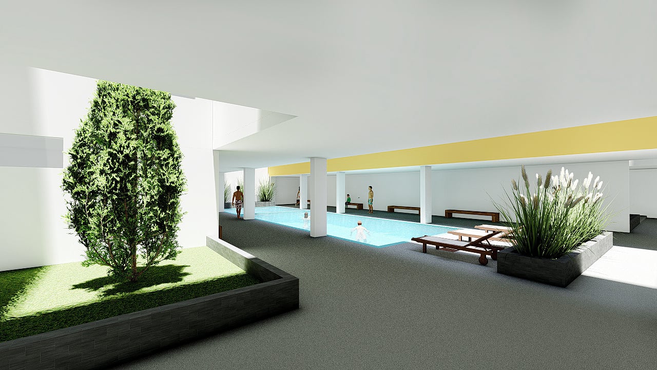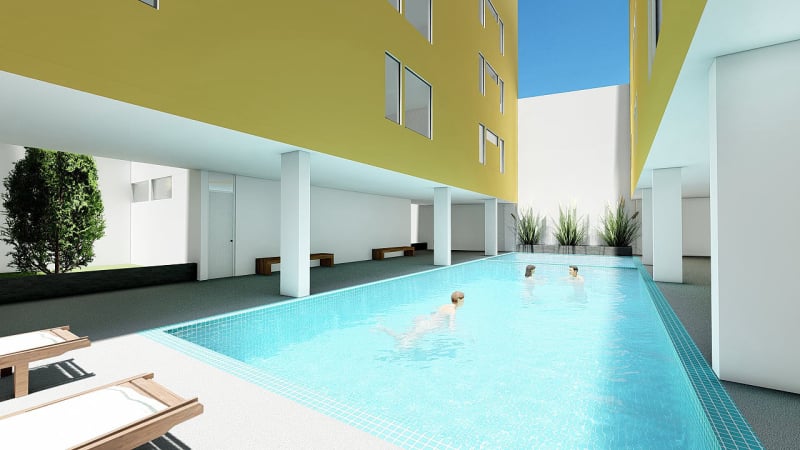 140 departamentos de 2 y 3 dormitorios, 50 estacionamientos, gimnasio, piscina temperada, sala de juegos